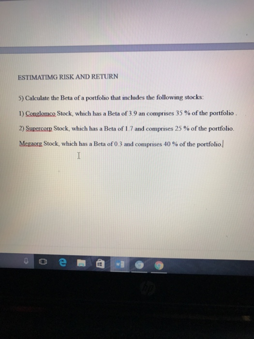 Solved: Consider The Following Information: Expected Retur ... from d2vlcm61l7u1fs.cloudfront.net The the portfolio beta will be: Then, prepare the beta coefficientbeta coefficientthe beta coefficient reflects the change in the price of a security in relation to the movement in the market price. If a stock moves less than the market, the stock's beta is less than 1.0. See full list on wallstreetmojo.com If you think of risk as the possibility of a stock losing its value, beta is useful as a proxy for risk. Let's say a portfolio has three stocks a, b and c, with portfolio weights as 10%, 30%, and 60% respectively. If your portfolio contains equities that extend beyond u.s. Β b is the beta of asset b